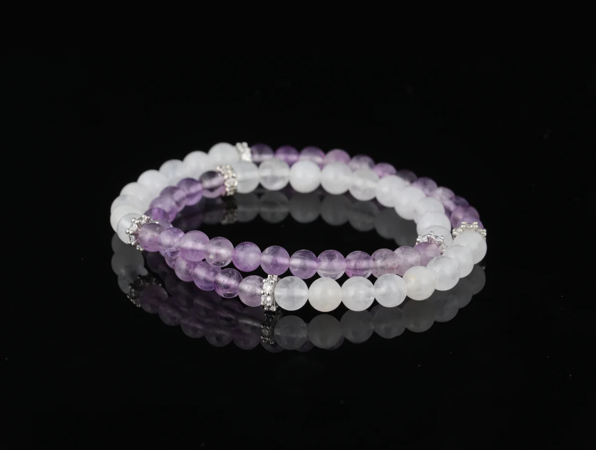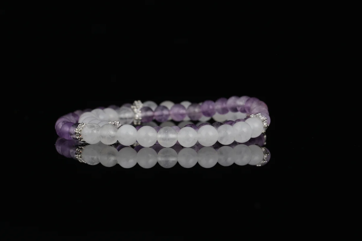 ✨【天然紫水晶白阿塞疊戴手鍊】✨ 🌟 天然紫水晶融合高頻率白阿塞,雙倍能量疊加,助你顯化心願。紫水晶招財助眠,白阿塞淨化轉運,疊戴設計層次感十足,單戴疊搭皆美。 💫 天然原石打磨,每一顆紋路都獨一無二。遵循「左進右出」原則佩戴,招財助眠戴左手,淨化負能量戴右手。 🛒 適合五行缺火、需提升財運與睡眠品質的你。天然水晶,能量純粹,為你的日常注入寧靜與好運。