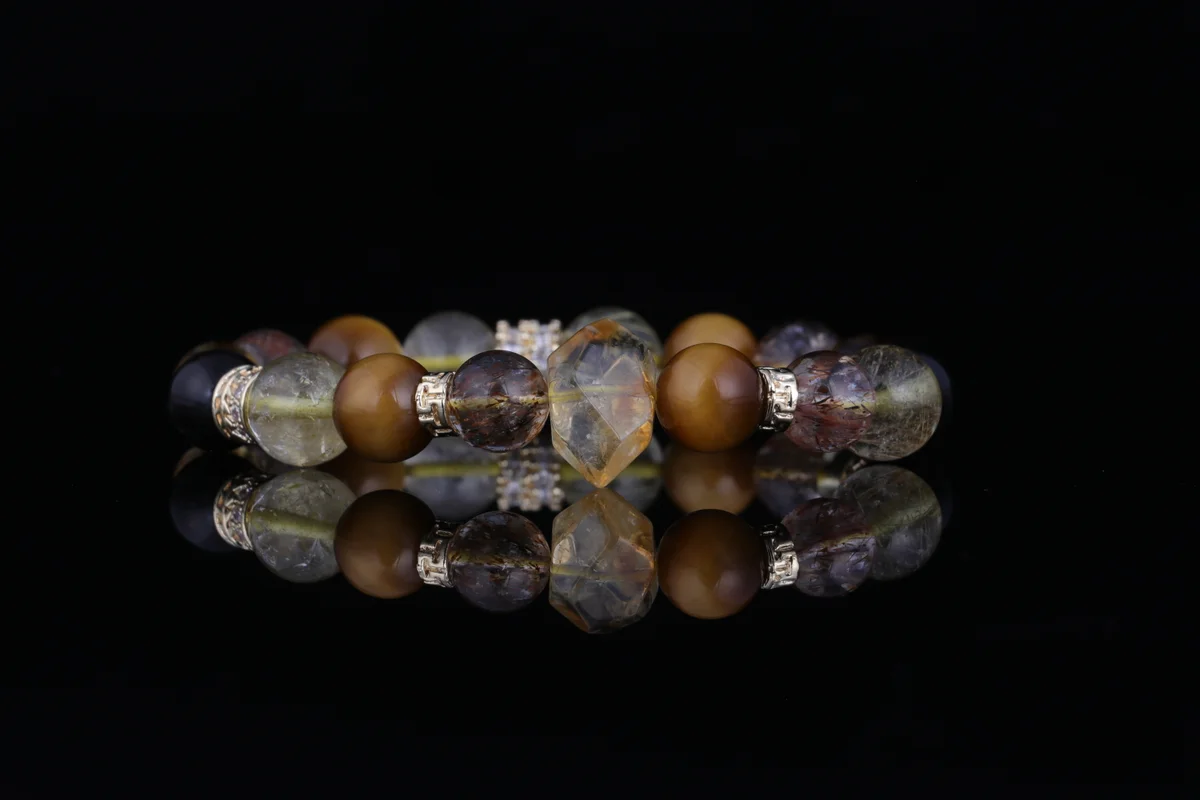 「超7」黃塔晶是這款手串的核心材質之一,根據產品簡介,其能量是普通水晶的3倍,這意味著它能提供更強大的聚財和能量疊加效果。這種晶石結合了金髮晶的「金行」能量,專助事業財運,並與其他材質如七彩光、銀耀石、金虎眼協同作用,實現多頻能量疊加。它不僅增強招正財和偏財的能力,還能辟邪護身、化解小人,適合上班族和經商人士佩戴以提升氣場和財運。