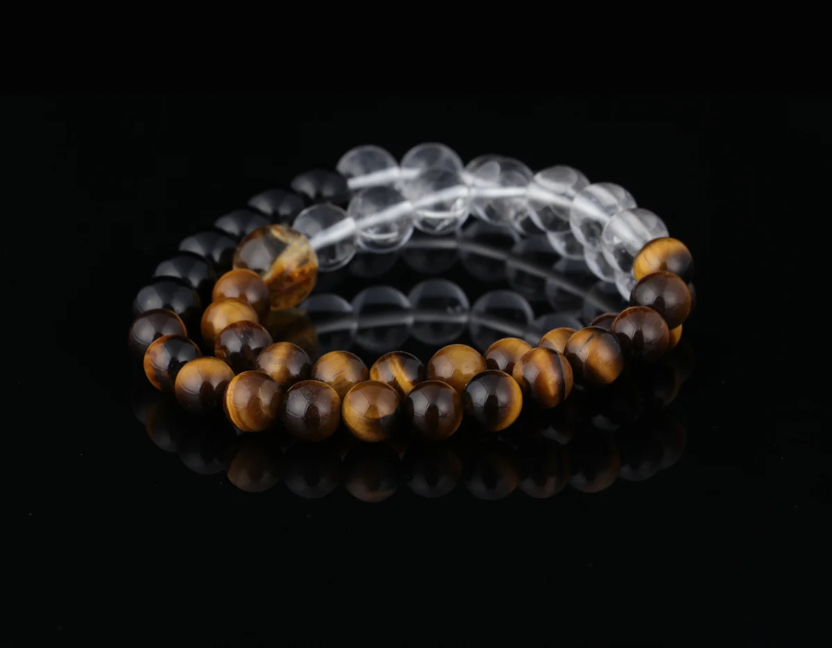 這款手鏈採用天然黃虎眼、白水晶和黑曜石三石疊戴設計,實現五行能量互補,打造專屬守護磁場。具體功效包括:黃虎眼增強自信並聚財氣,白水晶平衡身心並淨化負能量,黑曜石強力辟邪防小人。三效合一,旨在助你轉運開運,提升事業和生活運勢,尤其適合近期感覺運勢低迷、想增強氣場的用戶。