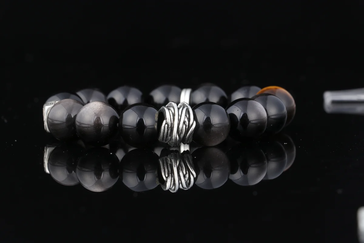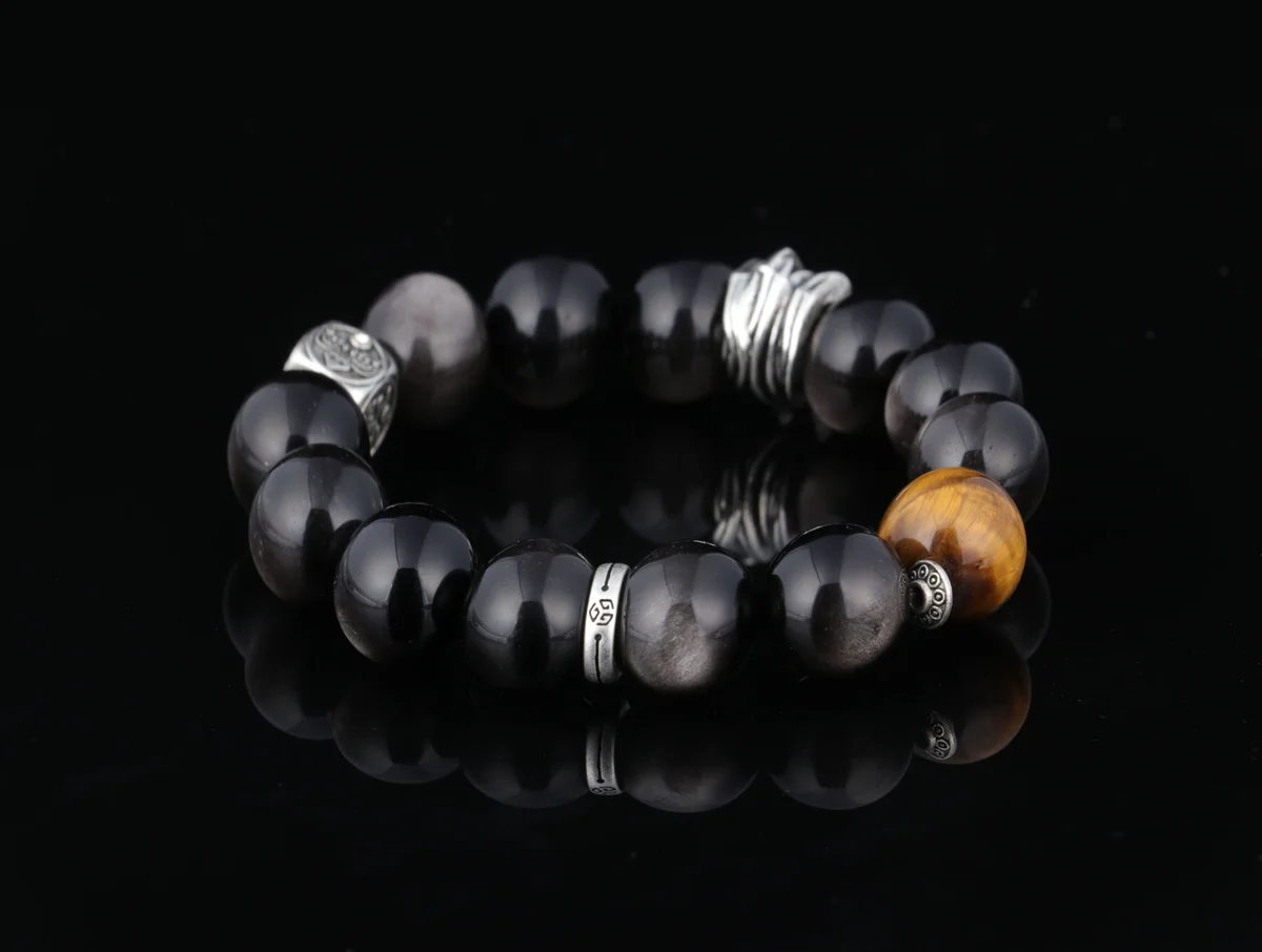 保養這款手串時,建議避免接觸化學物質或硬物刮擦,以保持天然虎眼石和銀曜石的完好。產品簡介中提到它是天然原石手工打磨,每條紋路獨特,定期用軟布擦拭可維持光澤。作為辟邪水晶,存放時最好單獨放置,避免能量干擾,長期佩戴能持續發揮招財轉運、辟邪擋煞的功效。