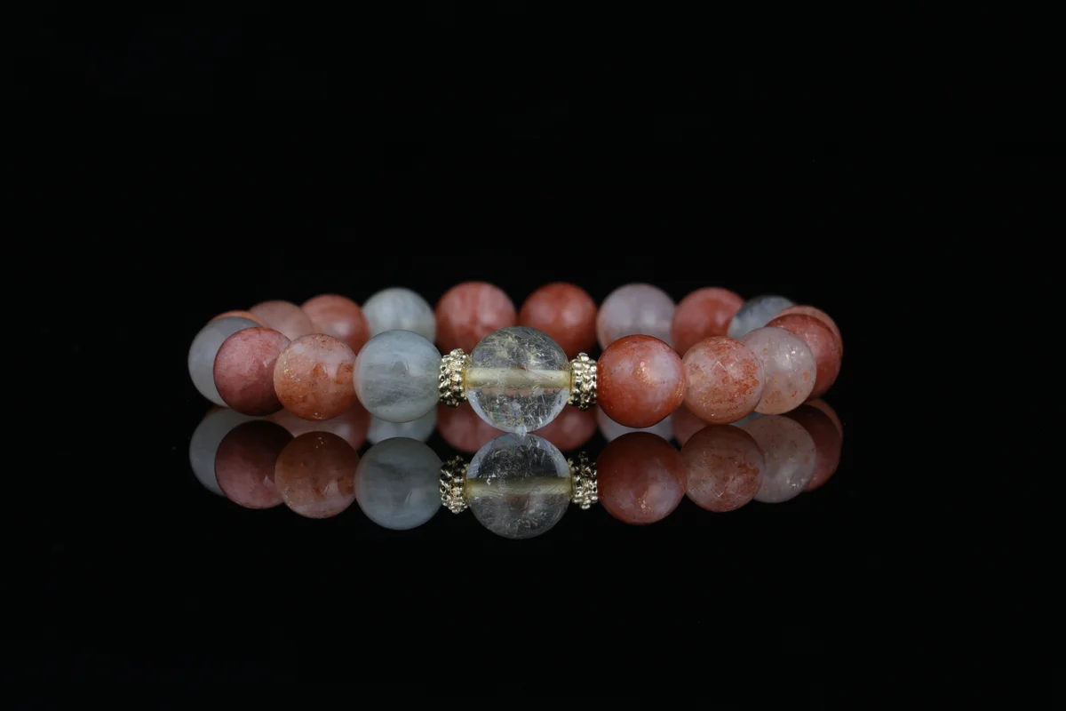 這款手鍊結合了天然阿魯沙月光石和金髮晶的雙重能量,功效顯著。月光石能安撫情緒、助深度睡眠,讓你在夜晚獲得寧靜休息;金髮晶則招正財、旺事業,促進財富積累和職業發展。雙倍能量協同作用,旨在助你整夜好眠、日進斗金,同時作為生辰訂製專屬能量串,它為你打造個人化的能量場,增強整體氣場與運勢流轉。
