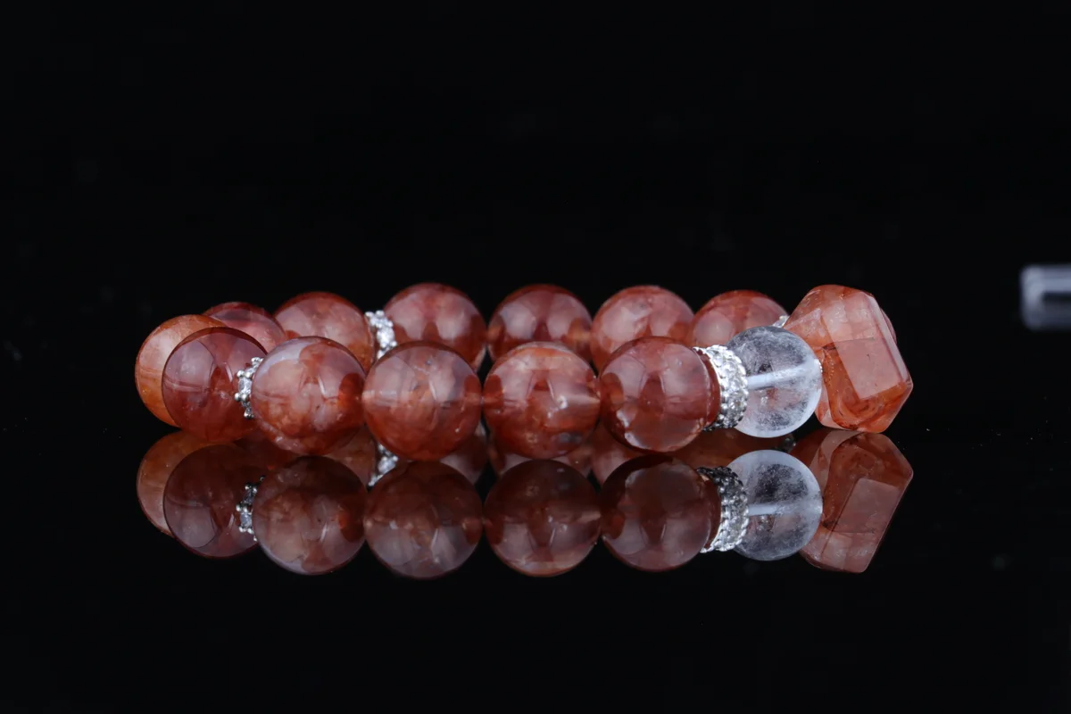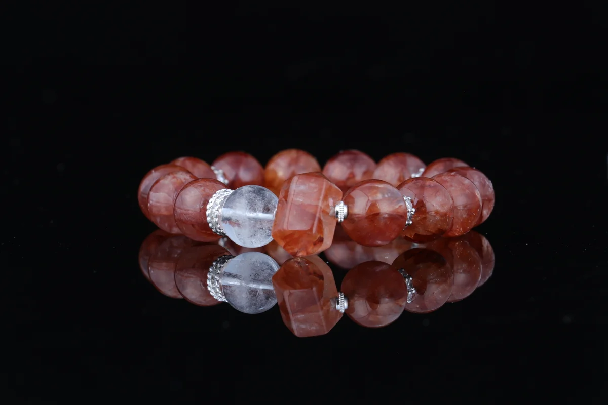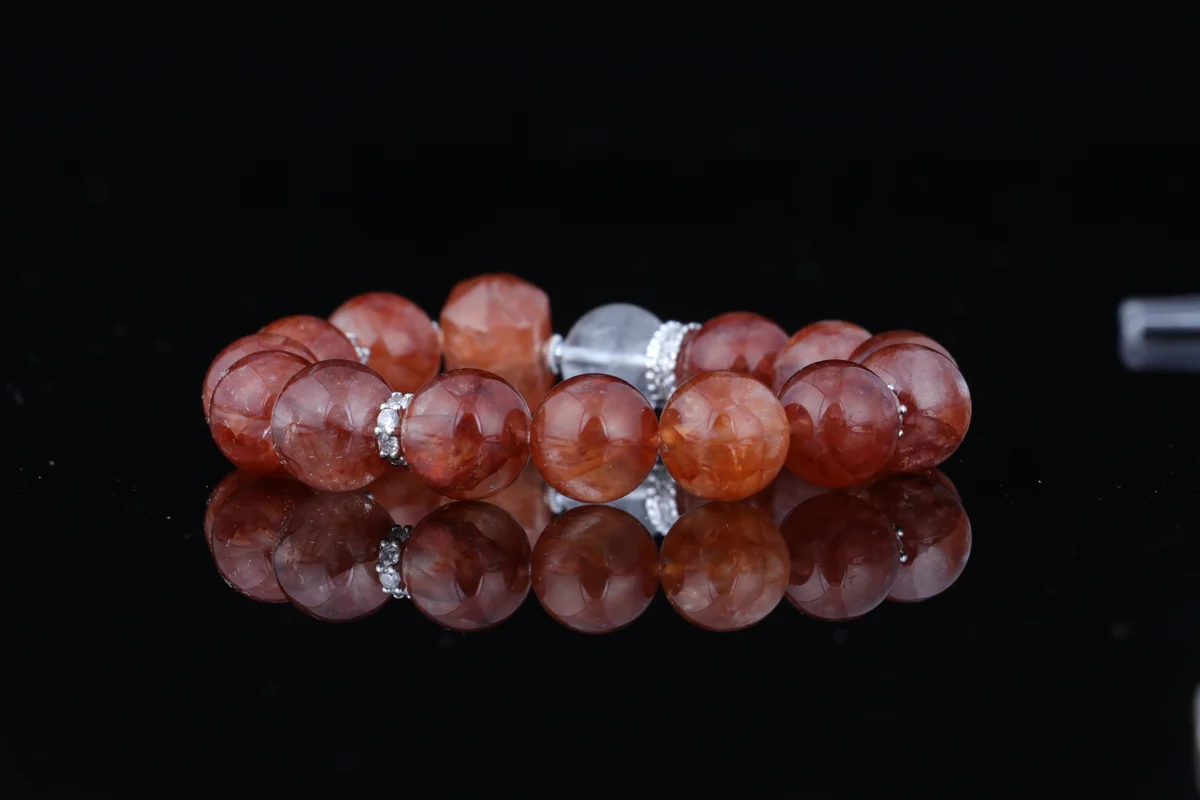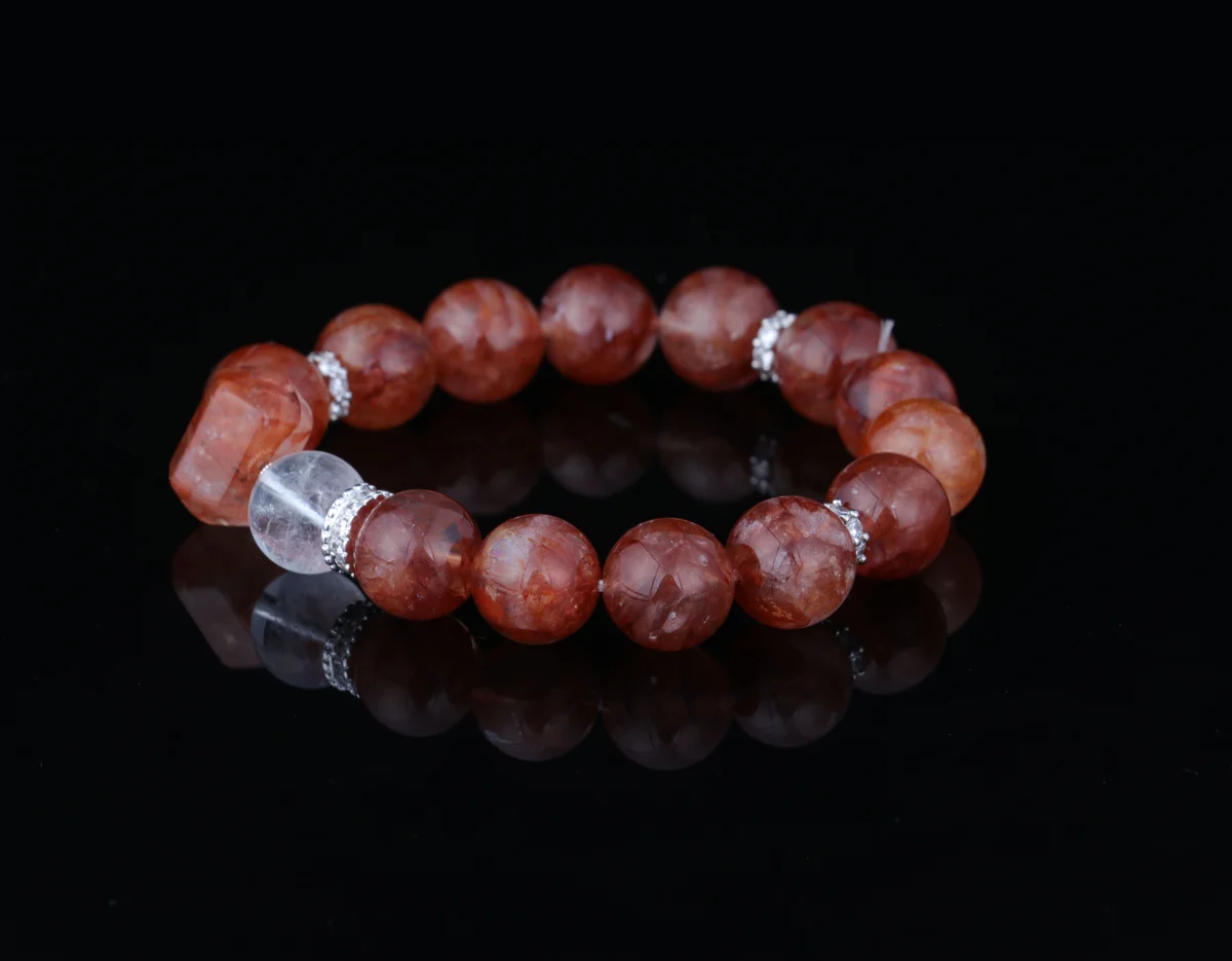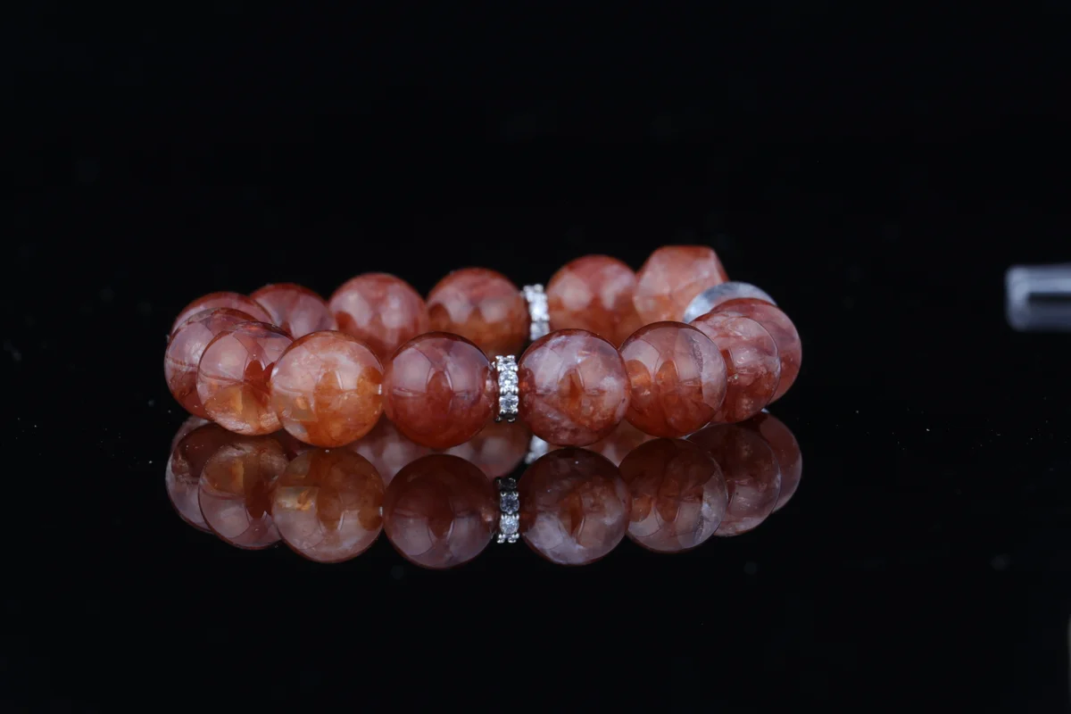 這款手串結合了天然白幽靈包裹紅膠花的能量,專為招財旺運設計。紅膠花主招偏財,白幽靈助旺正業,雙效合一能打破財運瓶頸,增強行動力與財運磁場。它對應五行火土,特別適合補命理缺火缺土者,佩戴三日即感能量流動,適合創業、銷售或投資人士提升財運。