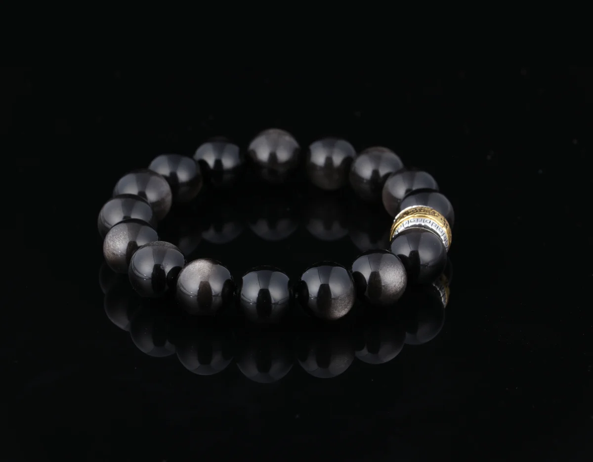 這款天然黑曜石手鏈具有強力辟邪護身和招財轉運的功效。黑曜石被譽為「黑金剛武士」,能吸收負能量,守護佩戴者平安順遂。同時,搭配漩渦銀飾設計,寓意財源滾滾、時來運轉,助你事業通達、財運亨通。五行屬水,適合需要增強氣場、化解煞氣的人士。