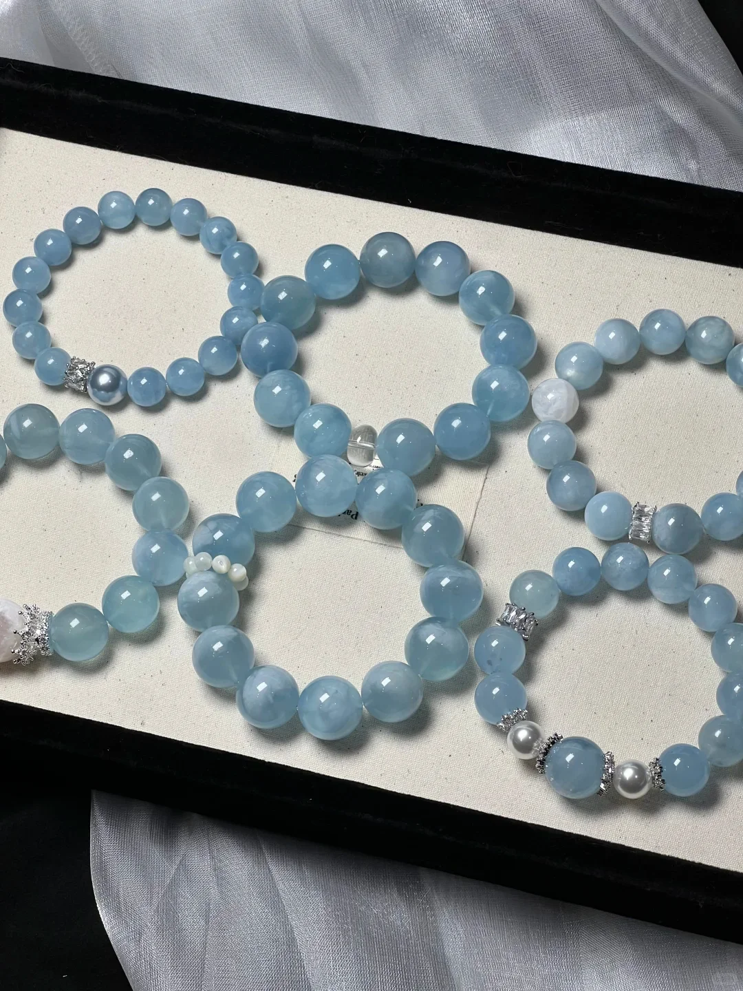 天然海藍寶水晶手鍊補水能量手串玉髓高級感訂製