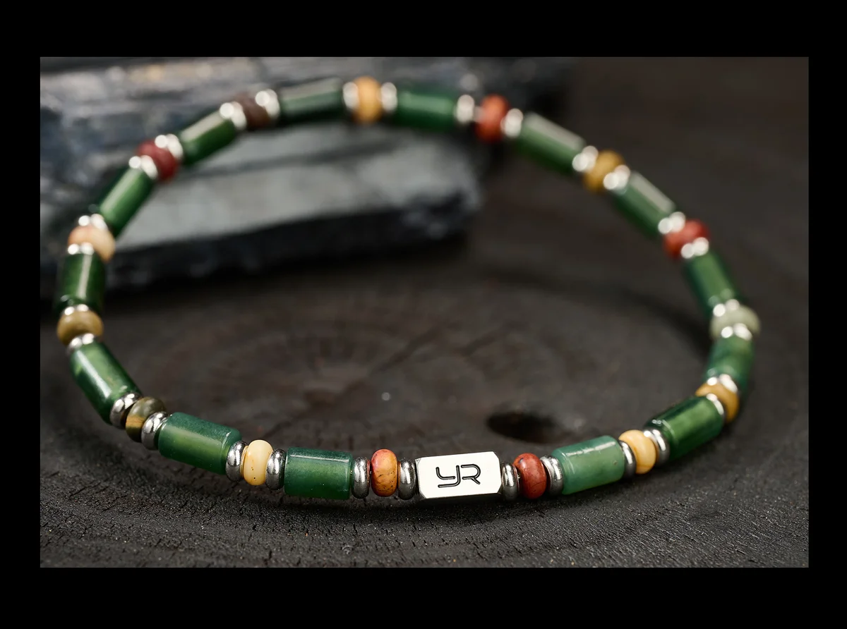 岫玉五彩串珠手鍊手串|ins風小眾設計手工男士男生男女通用首飾品