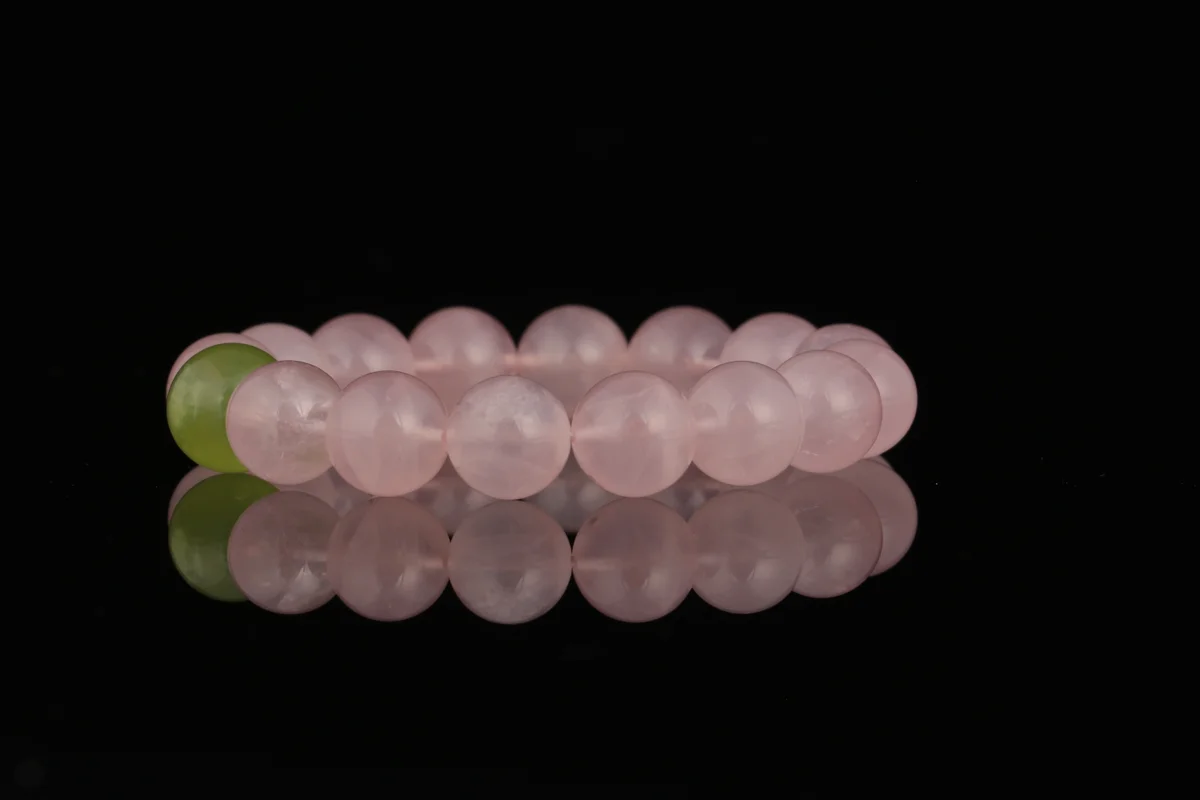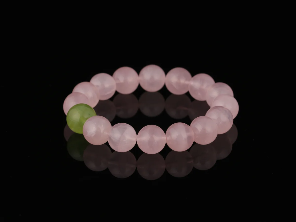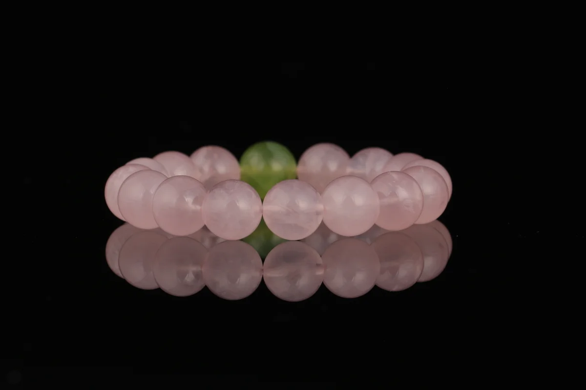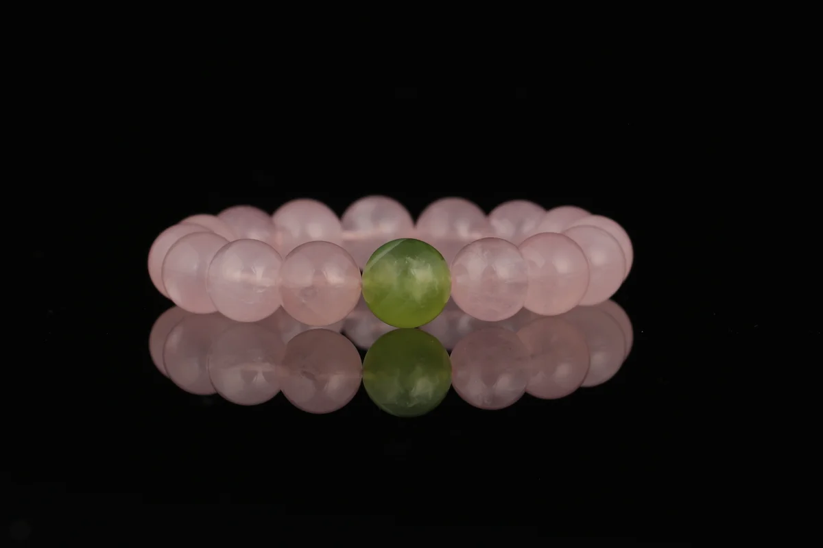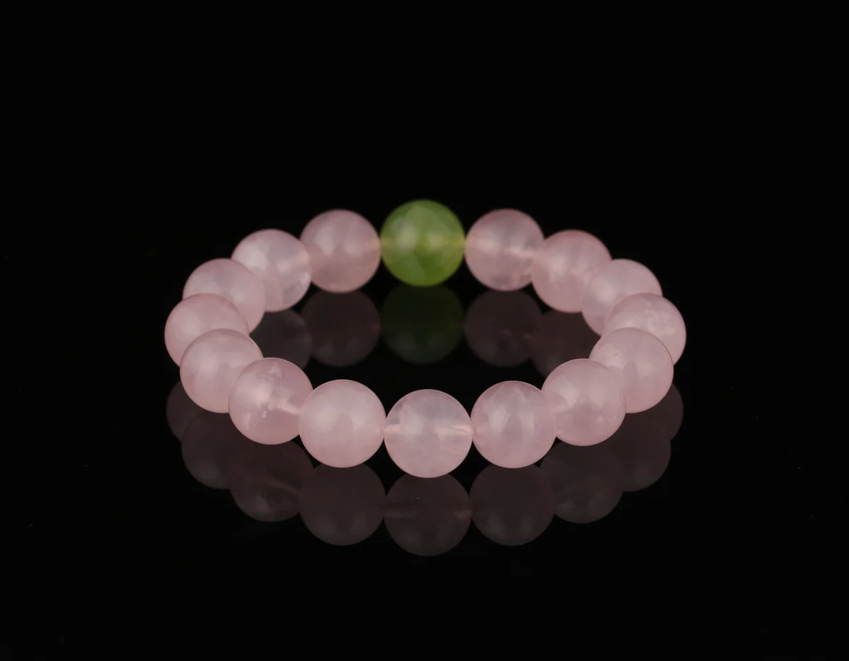這款手鍊屬於健康水晶和愛情水晶類別。產品簡介中明確分類為健康水晶、愛情水晶。粉晶主攻愛情能量,綠玉髓增強人際關係,雙倍助力正緣,使其成為愛情水晶的代表;同時,天然晶石的柔和磁場也可能對整體健康和情緒有積極影響,符合健康水晶的特性。適合追求愛情提升和正能量的人群使用。