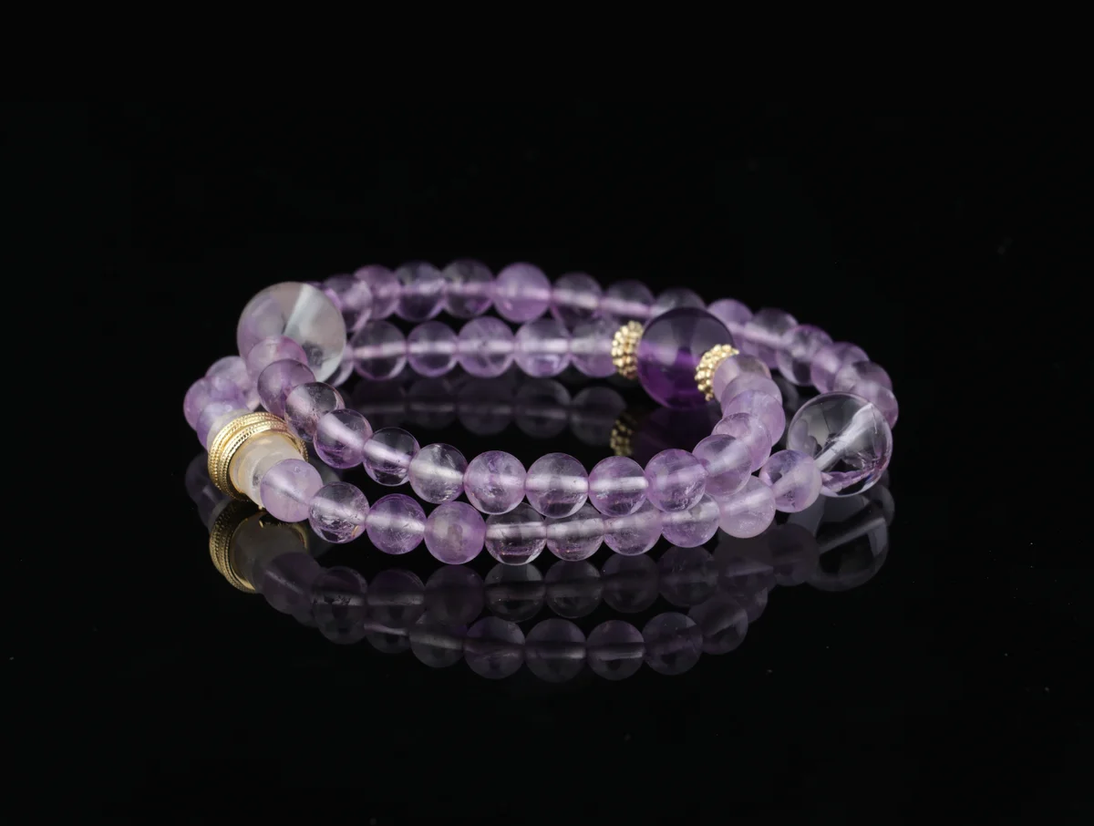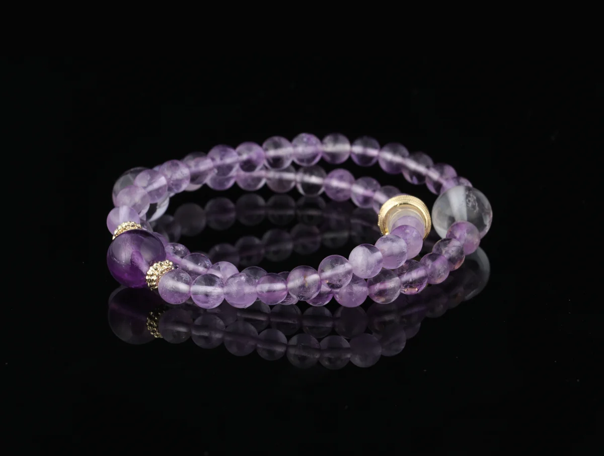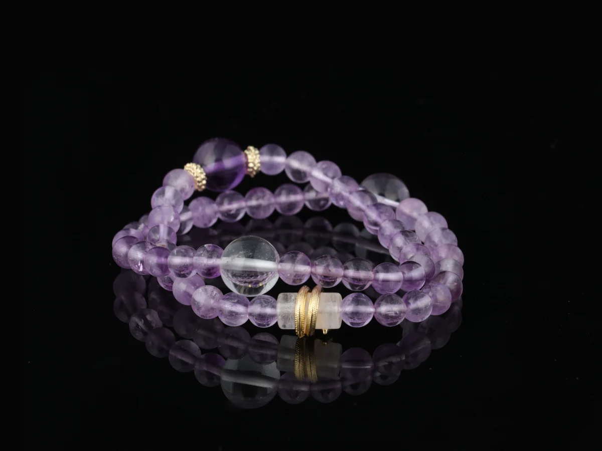 Q.紫水晶和白水晶在這款手串中分別有什麼功效?