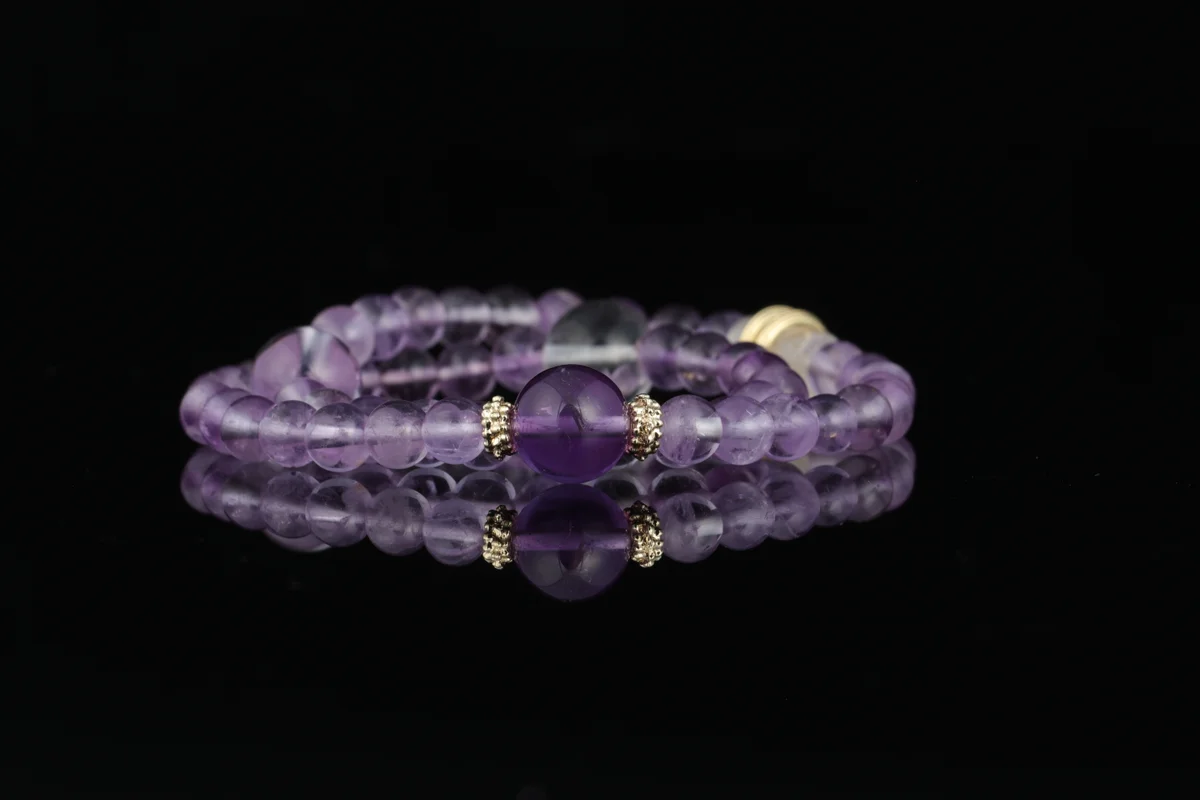 這款手串專為生辰五行定制設計,採用天然紫水晶和白水晶雙色搭配,基於五行能量互補原理,針對您的命格進行調和。每一顆水晶都經過精心挑選和打磨,蘊含大地靈氣,確保能量場與您的個人運勢相契合,提供專屬的能量守護,絕非通用或人工合成產品。