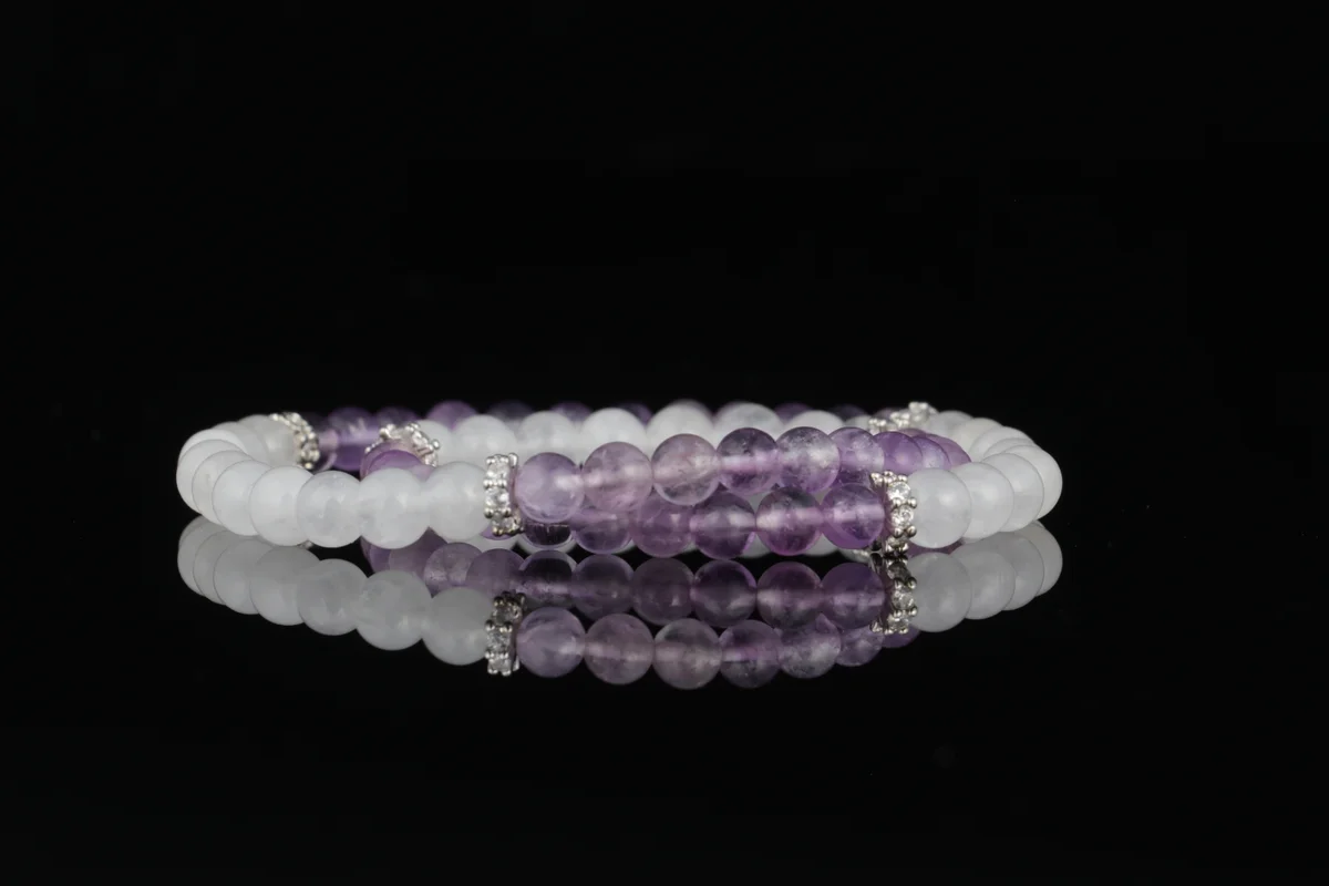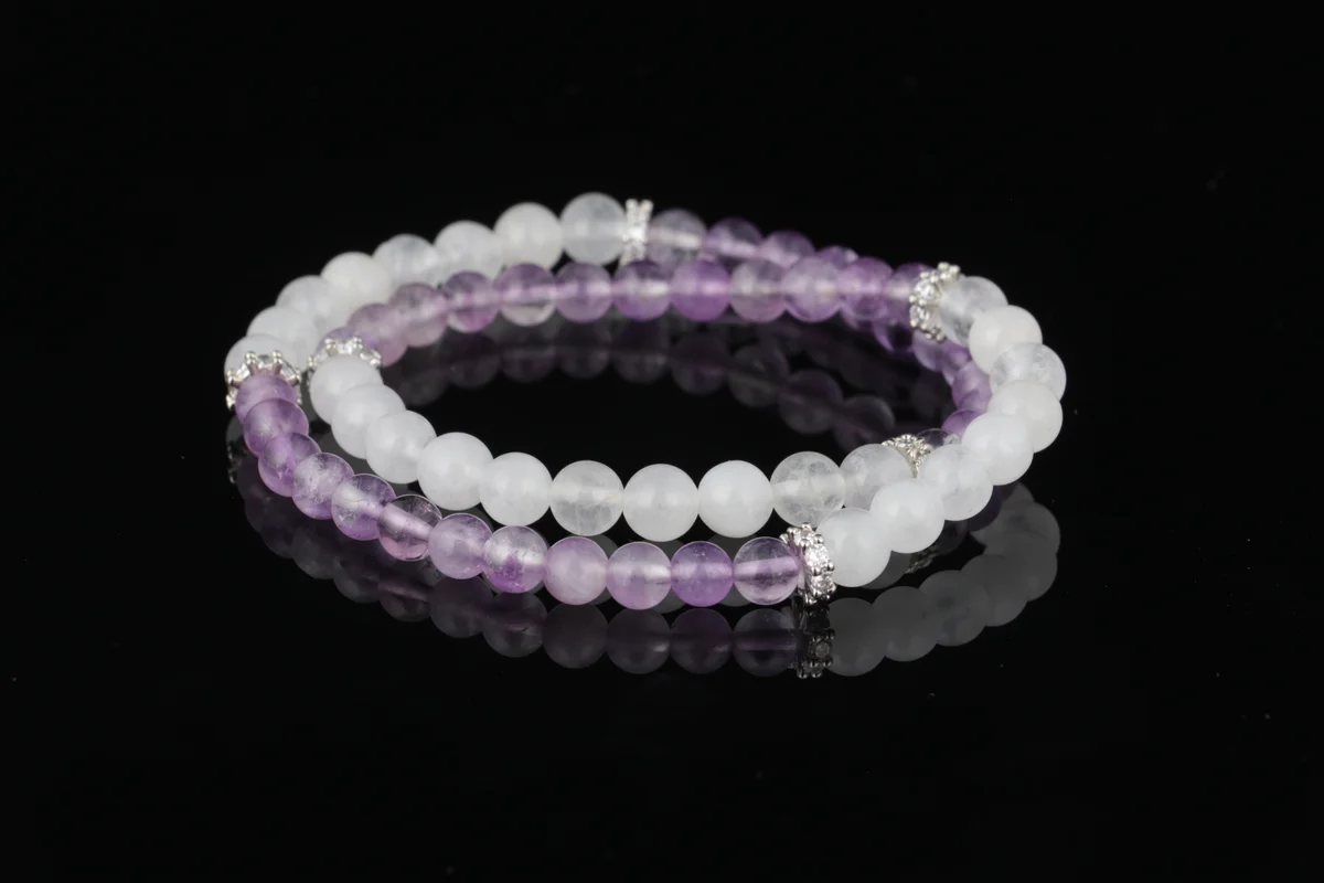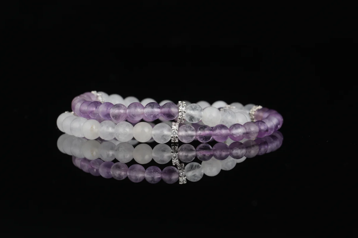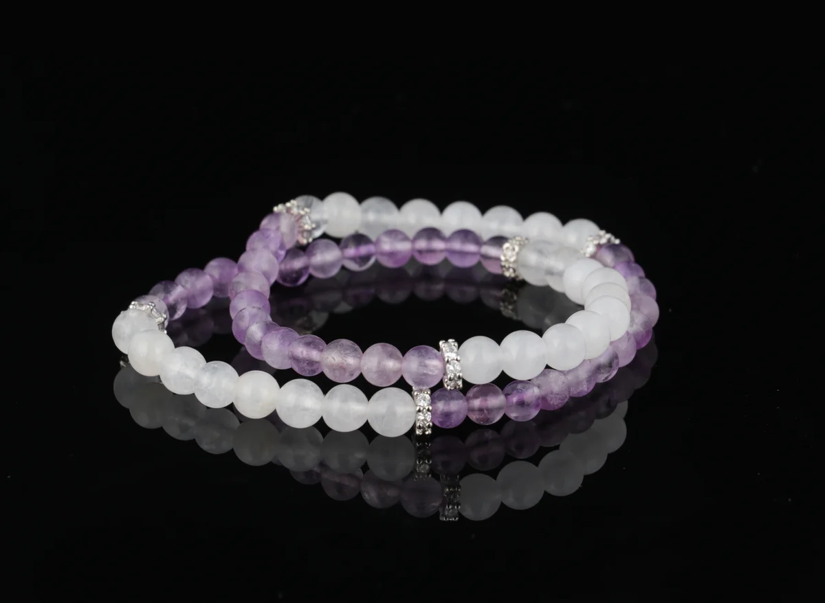 ✨【天然紫水晶白阿塞疊戴手鍊】✨ 🌟 天然紫水晶融合高頻率白阿塞,雙倍能量疊加,助你顯化心願。紫水晶招財助眠,白阿塞淨化轉運,疊戴設計層次感十足,單戴疊搭皆美。 💫 天然原石打磨,每一顆紋路都獨一無二。遵循「左進右出」原則佩戴,招財助眠戴左手,淨化負能量戴右手。 🛒 適合五行缺火、需提升財運與睡眠品質的你。天然水晶,能量純粹,為你的日常注入寧靜與好運。