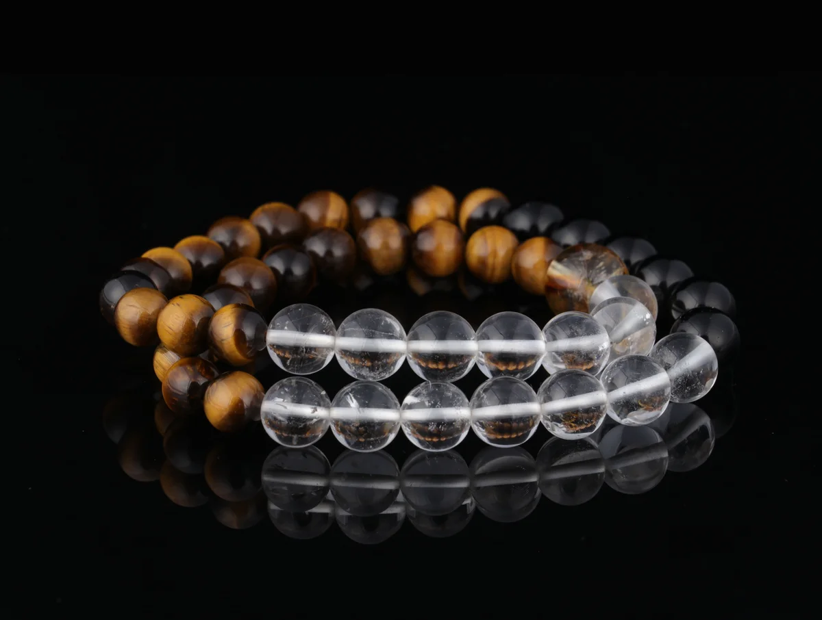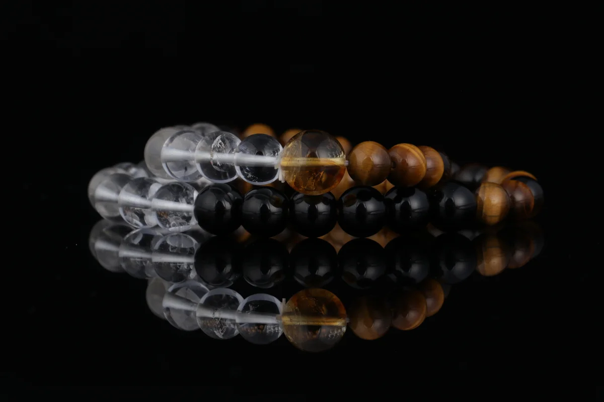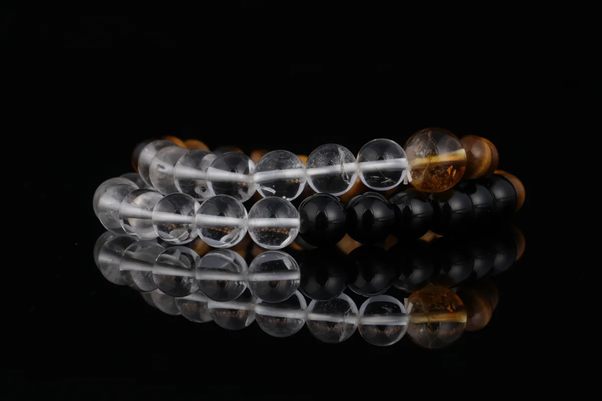 這款手鏈採用天然黃虎眼、白水晶和黑曜石三石疊戴設計,實現五行能量互補,打造專屬守護磁場。具體功效包括:黃虎眼增強自信並聚財氣,白水晶平衡身心並淨化負能量,黑曜石強力辟邪防小人。三效合一,旨在助你轉運開運,提升事業和生活運勢,尤其適合近期感覺運勢低迷、想增強氣場的用戶。