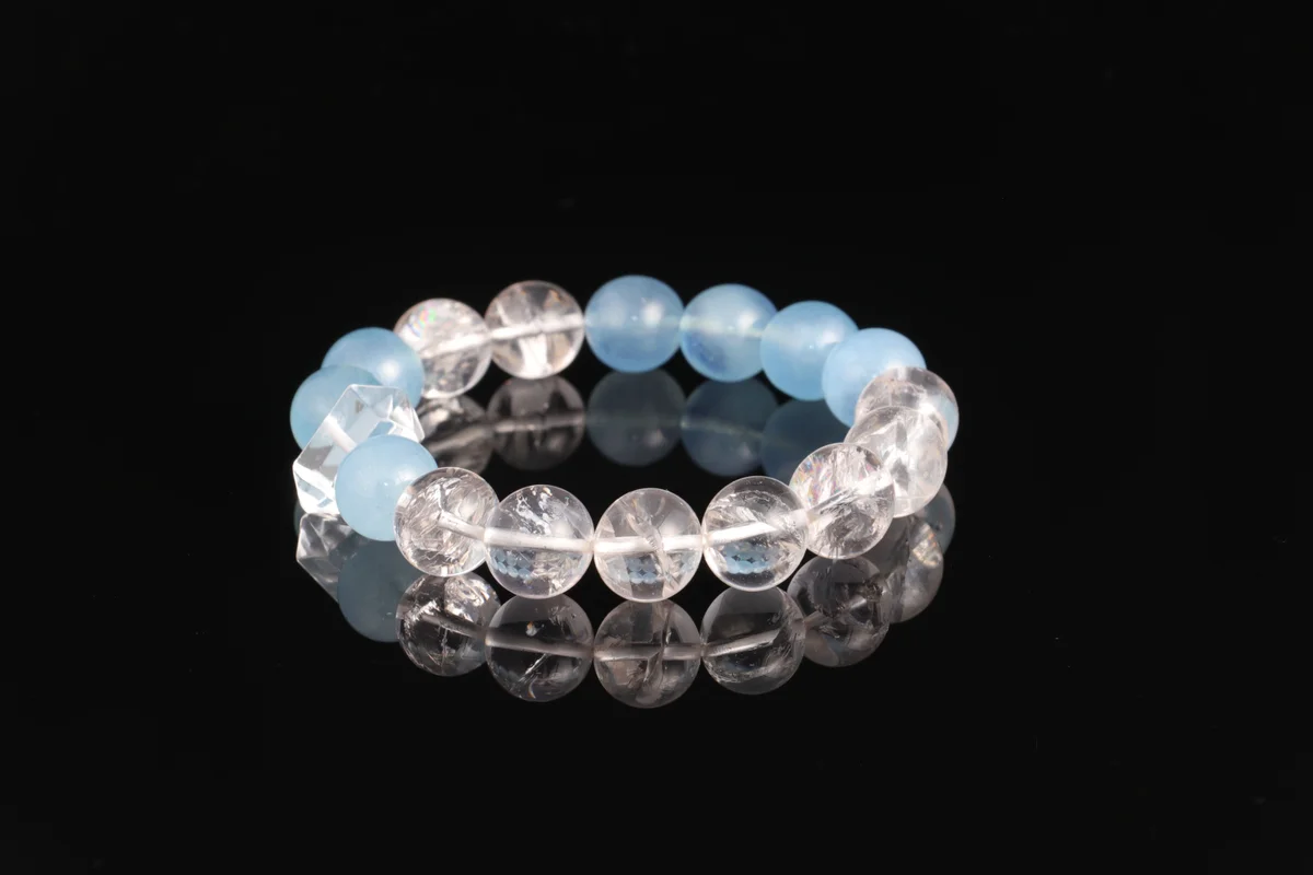 天然海藍寶白水晶手串生辰石訂製能量手鍊送禮自用