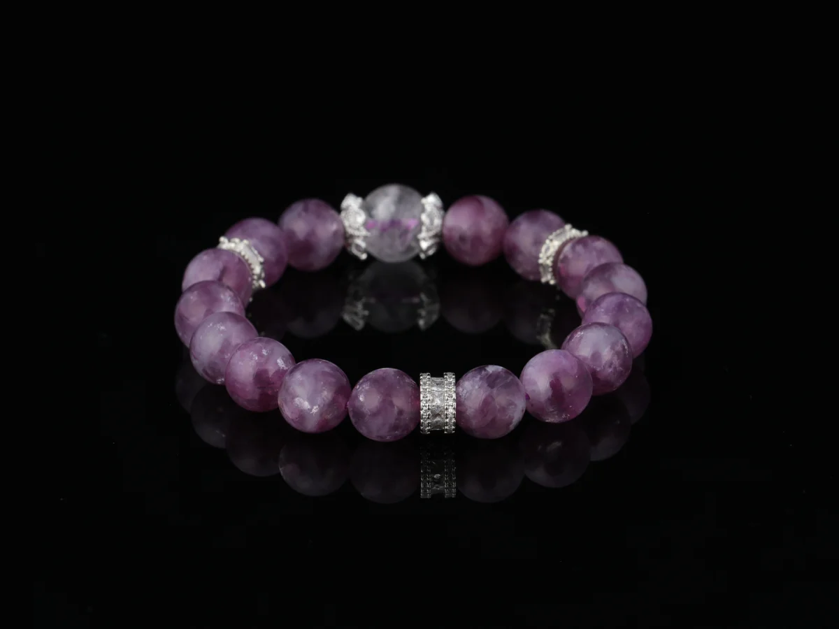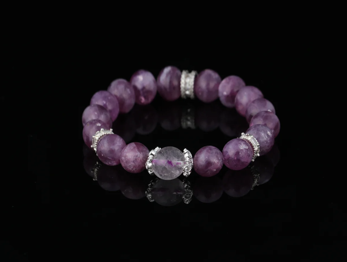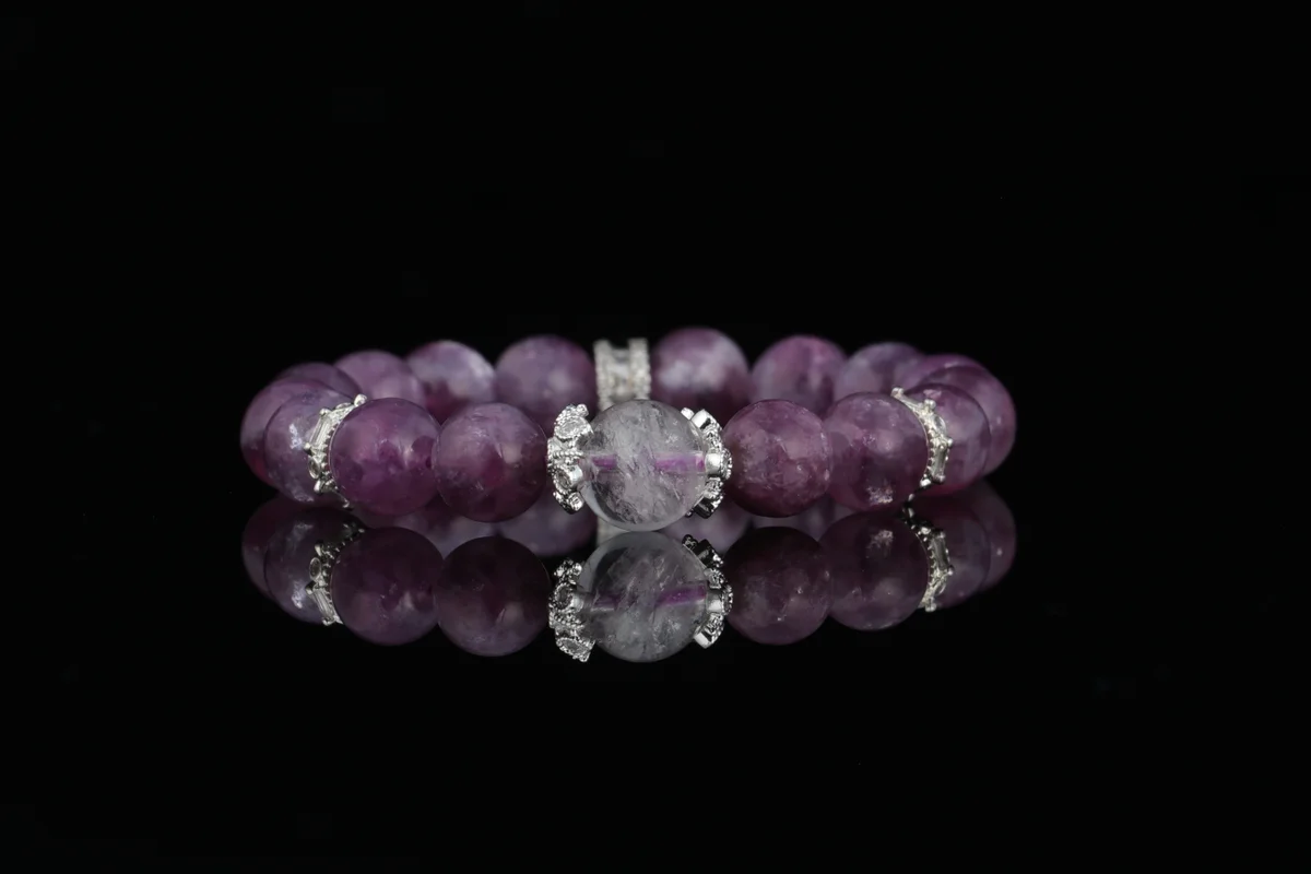 這款手鍊的材質均為天然原礦,包括紫雲母和白水晶,確保能量純正。製作工藝上,每顆晶石都經過手工打磨,保留了原始能量場,避免機械加工可能帶來的能量損耗。這種工藝不僅提升了手鍊的美觀度,還增強了其能量效果。產品簡介強調天然和手工特性,適合注重能量品質和工藝細節的用戶。