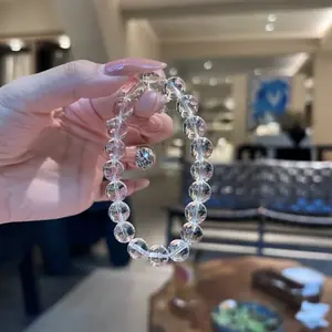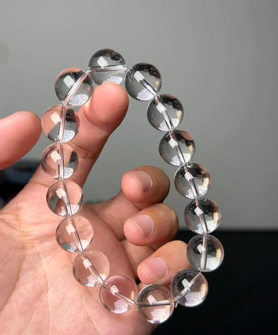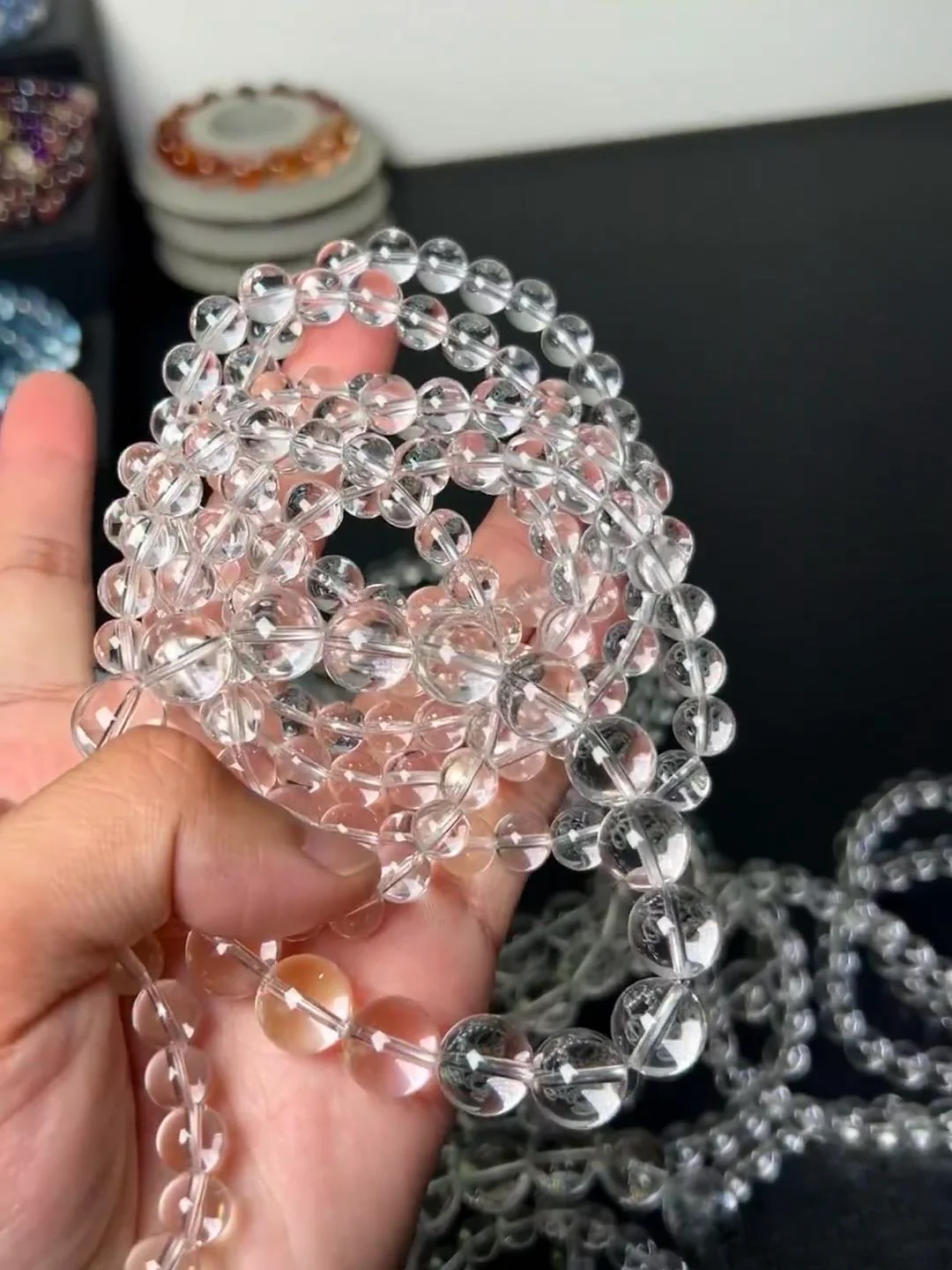 白水晶手串的質感好高級,珠子圓潤光滑,通透度超高,戴在手上感覺整個人都變得純凈了