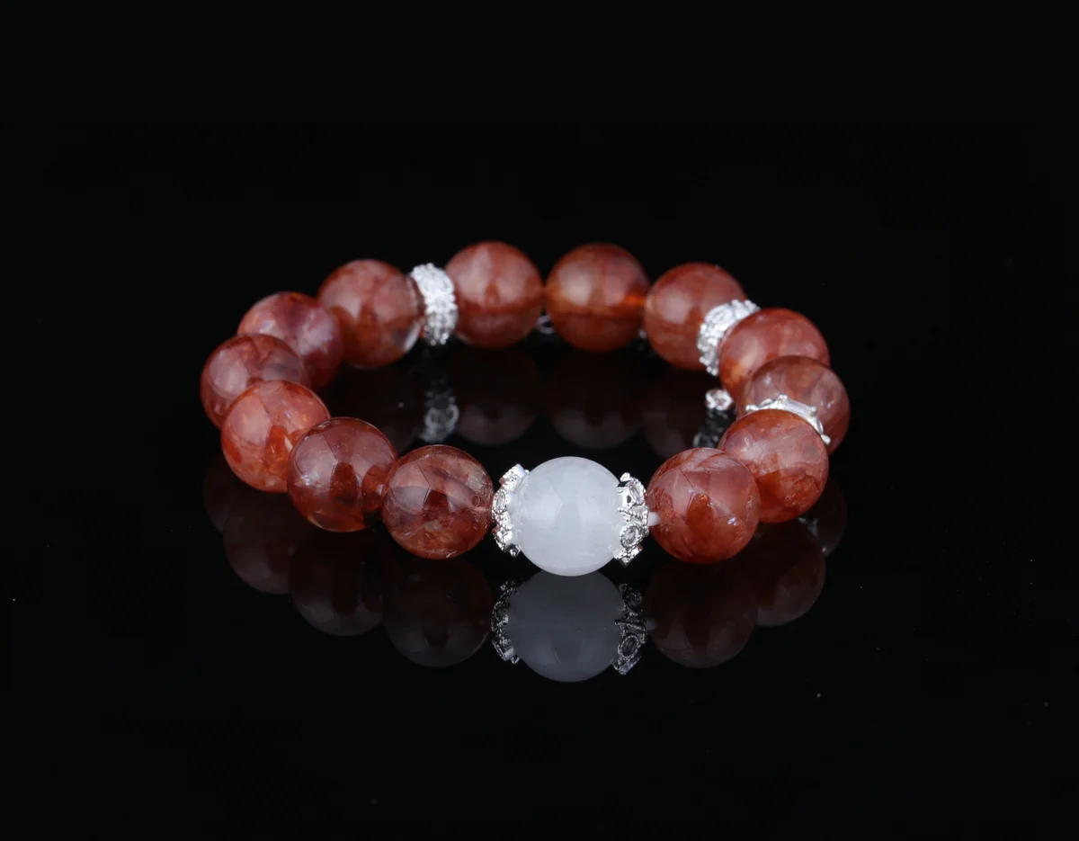 -32%天然紅膠花白水晶手串 五行補金火能量手鍊 命理定制轉運珠串