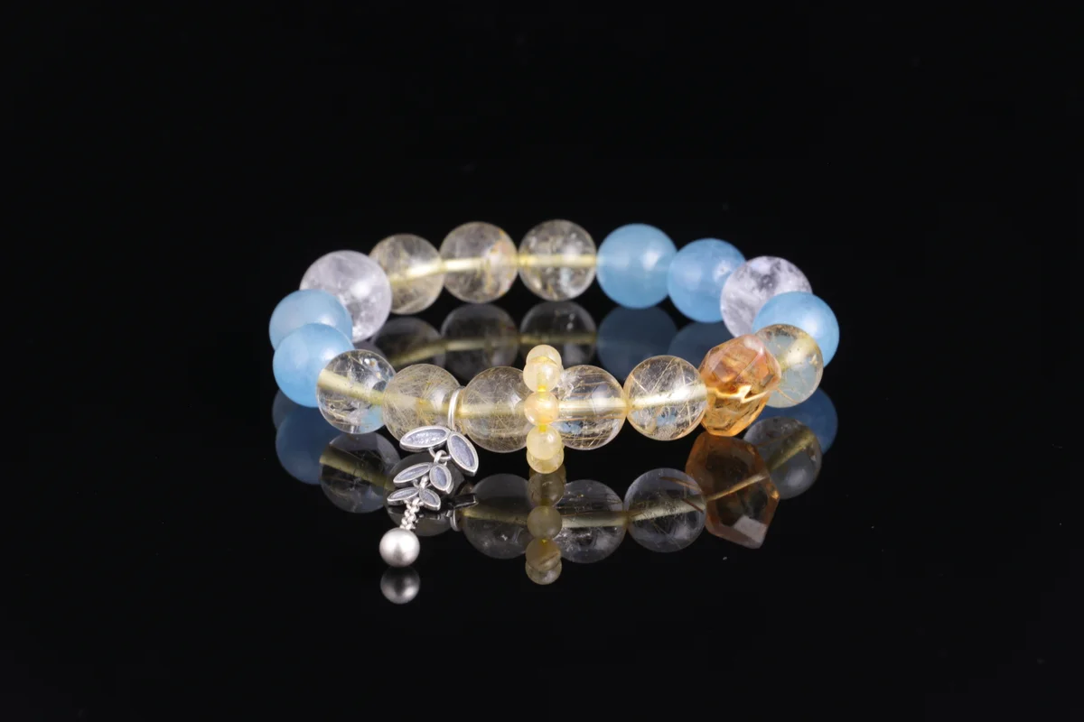 -36%天然海藍寶金髮晶白阿塞手串 生辰定制五行能量水晶 招財轉運根基手鏈