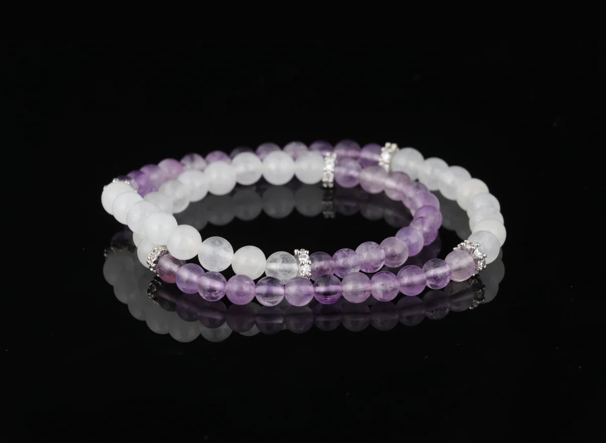 -38%天然紫水晶白阿塞手鍊 疊戴款能量顯化手串 招財轉運助眠天然水晶