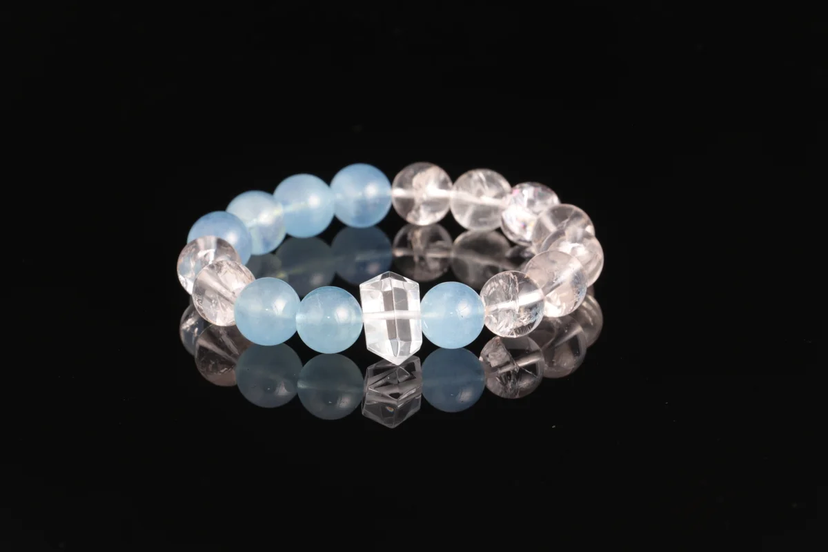 -27%天然海藍寶白水晶手串生辰石訂製能量手鍊送禮自用